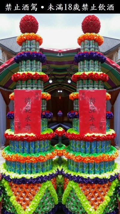 【使用花材】人造花.汽水飲料(舒跑.海尼根)配搭.約420罐