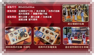 【使用花材】紙紮(名模美女X12位/各式美酒/中西式佳餚/超大包廂室/旗艦伴唱KTV組)