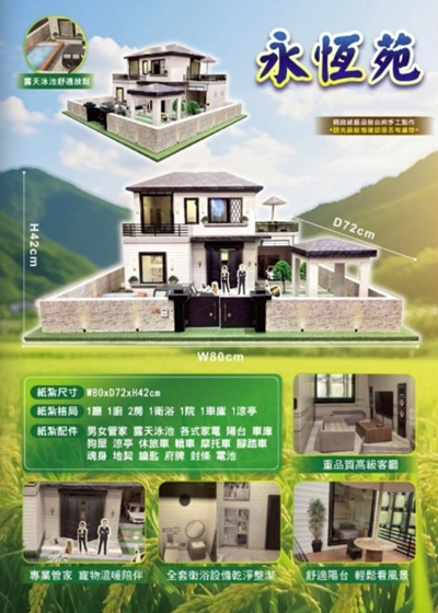 首頁 > 告別追思花禮 > 【gss527】豪宅(靈屋/靈厝)/快樂農場菜園/和風湯屋/溫泉風呂~各式紙紮可供選擇