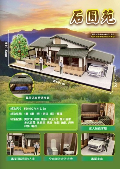 【使用花材】紙紮(豪宅/渡假宅/快樂農場菜園/和風湯屋/溫泉風呂等.可擇一風格)