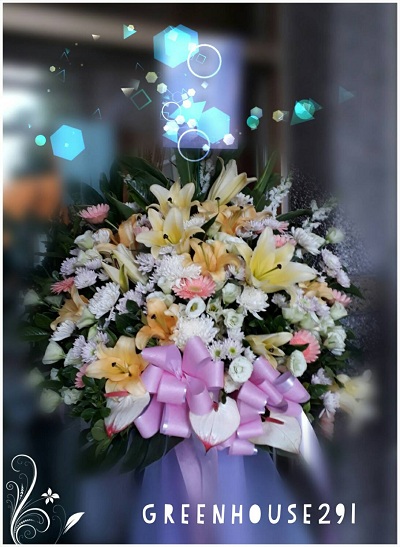 【使用花材】香水百合、太陽花、火鶴花、富貴花、百合竹