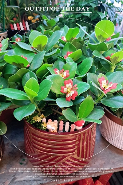 【使用花材】圓葉聚財樹(書帶木).素雅瓷盆.飾品
