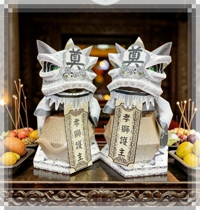 【使用花材】紙紮靈獅藝品(靈前桌上型)